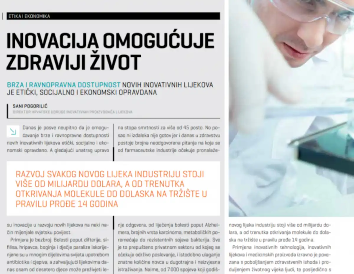 Danas je posve neupitno da je omogućavanje brze i ravnopravne dostupnosti novih inovativnih lijekova etički, socijalno i ekonomski opravdano. A gledajući unatrag upravo su inovacije u razvoju novih lijekova na neki način mijenjale svjetsku povijest. Primjera je bezbroj. Bolesti poput difterije, sifilisa, hripavca, boginja i dječje paralize iskorijenjene su u mnogim dijelovima svijeta upotrebom antibiotika i cjepiva, a zahvaljujući lijekovima danas osam od desetero djece može preživjeti leukemiju.
